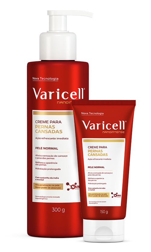 O Creme para Pernas Cansadas Varicell® está disponível em duas versões: o novo Varicell® Nanointense e Varicell® Pele Áspera e Extrasseca.